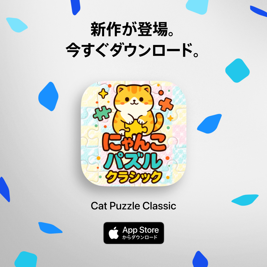 記憶力&集中力強化型パズル にゃんこパズルクラシック 内容 にゃんこパズルクラシックは、クラシックなジグソーパズルの楽しさをデジタルで進化させた、誰でもすぐに楽しめるシンプルなパズルゲーム。 隙間時間にでもプレイできる。 邪魔な広告も100円で削除できる。 友達とみんなでわいわいやるのも良し。 じっくり楽しむも自己ベストをめざすもよし!