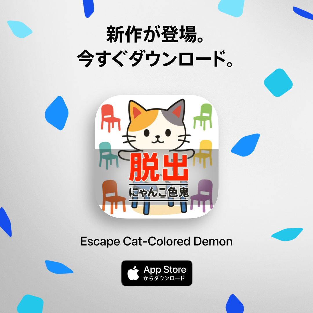 判断強化型アプリ 脱出にゃんこ色鬼 内容 指定された色の椅子に座っている間は無敵! 一分間昼飯前に連れ戻しに来た管理人から逃げきれ。 隙間時間にでもプレイできるよ。 邪魔な広告も100円で削除できる。 友達とみんなでわいわいやるのも良し。 じっくり楽しむも自己ベストをめざすもよし!