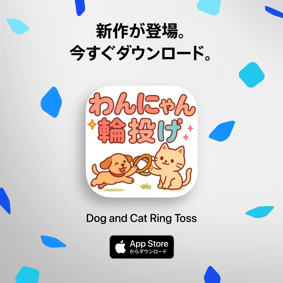 感覚強化型アプリ わんにゃん輪投げ 内容 「わんにゃん輪投げ」はシンプルなハイパーカジュアルな輪投げアプリ! 1試合5投で、どれだけポイントを稼げるかに挑戦!計10試合。 隙間時間にでもプレイできる。 邪魔な広告も100円で削除できる。 友達とみんなでわいわいやるのも良し。 じっくり楽しむも自己ベストをめざすもよし!